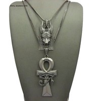 NEW EGYPTIAN ANUBIS & ANKH CROSS PENDANT & BOX CHAINS HIP HOP NECKLACE SET