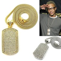 MENS NEW HIP HOP FULL CZ DOG TAG PENDANT 4mm 36" FRANCO CHAIN NECKLACE