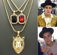 NEW MENS HIP HOP KING LION ANGEL RED RUBY ONYX PENDANT 3 THREE CHAIN NECKLACE
